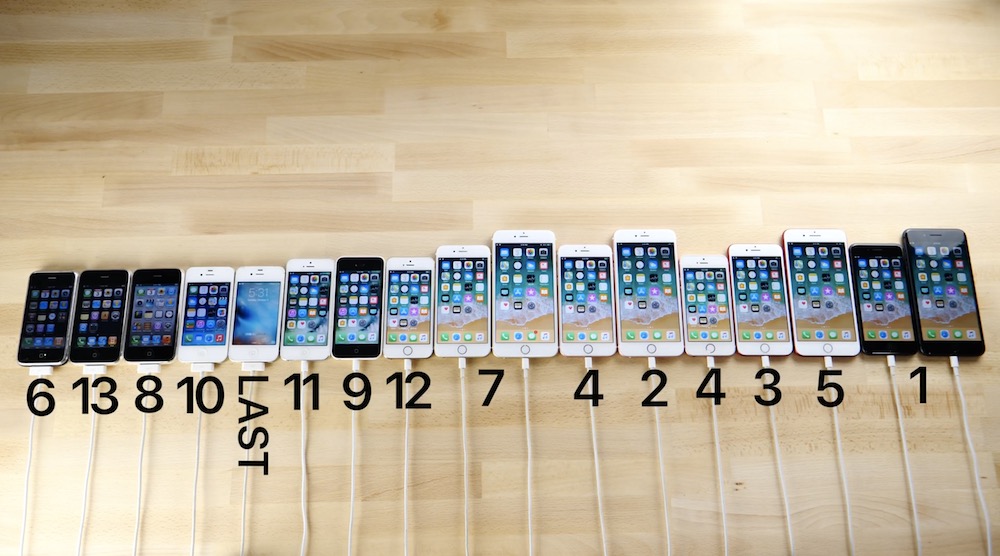 Letošní rok je pro iPhone skutečně významný. Jablečný telefon totiž začátkem ledna oslavil své desáté výročí od premiéry prvního modelu, který slavnou éru smartphonů od Applu odstartoval. Za celé ty roky zvládla společnost představit celkem 18 různých modelů iPhonu a právě ty všechny, tedy až na jednu výjimkou, kterou je samozřejmě iPhone X, porovnal YouTuber EverythingApplePro ve svém nedávném videu. V testu se tak utkal iPhone 8 Plus vs 8 vs 7 Plus vs 7 vs SE vs 6S Plus vs 6S vs 6 Plus vs 6 vs 5S vs 5C vs 5 vs 4S vs 4 vs 3G vs 3G vs 2G.