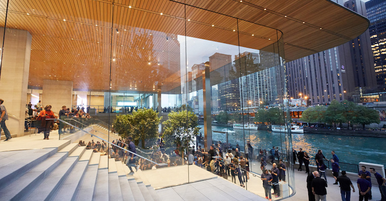 apple michiganave waterfront retail exterior windows steps