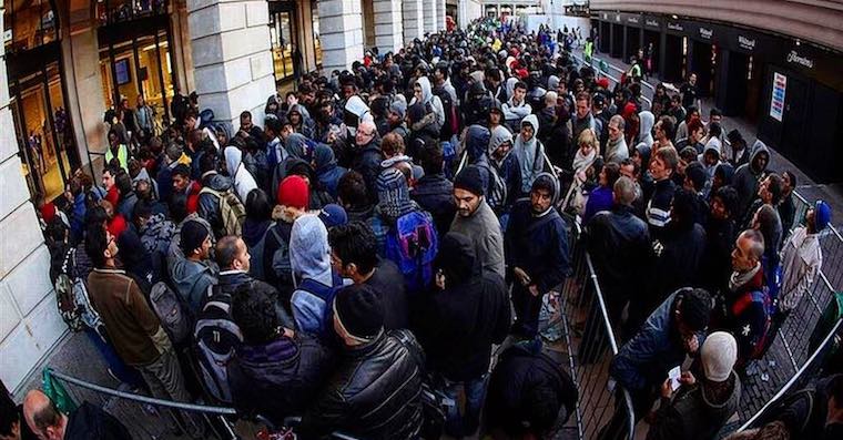 Koukám, kolik si v Londýně chudáků uprchlíků jde koupit iPhone X.