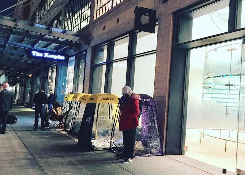 To na Manhattanu na to šli chytře. Ti nejotrlejší zákazníci si před Apple Story postavili provizorní přístřešky, ve kterých čekají od středeční noci v naději, že se právě na ně usměje po zahájení prodejů iPhonů X štěstí.