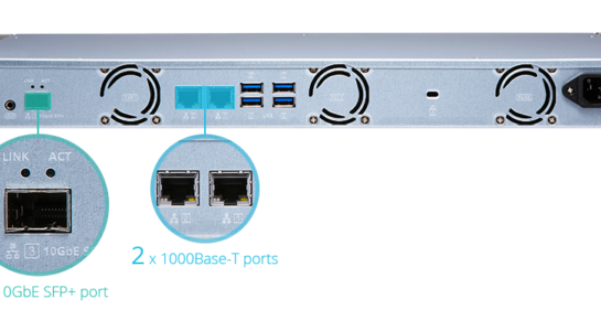 Short depth, model NAS typu rack mount; Annapurna Labs, společnost skupiny Amazon, Alpine AL-314 čtyřjádrový 1,7 GHz Cortex-A15 CPU, vyměnitelné za chodu 2,5”/3,5” SATA 6 Gb/s HDD/SSD; 1x 10 Gigabit SFP+ port; 2x Gigabit RJ45 port; 4x USB 3.0 port