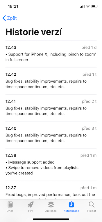 Na YouTube nenajdete jedno jediné video, které by bylo natočené v rozlišení s poměrem stran 19,5:9, tedy se stejným jako se chlubí displej iPhonu X. Vzhledem k tomuto faktu se tak při použití funkce „pinch to zoom“ video jenom roztáhne přes celou obrazovku, a tak se vám horní a dolní okraje obrazu skryjí. V některých případech to nemusí absolutně vadit, jindy ale naopak třeba uvidíte jenom polovinu hlavy apod. Stejně tak vám část videa zakryje i výžez v displeji, jde však o zanedbatelný kousek. Možnost roztáhnout video na celý displej telefonu je ale rozhodně vítaná.