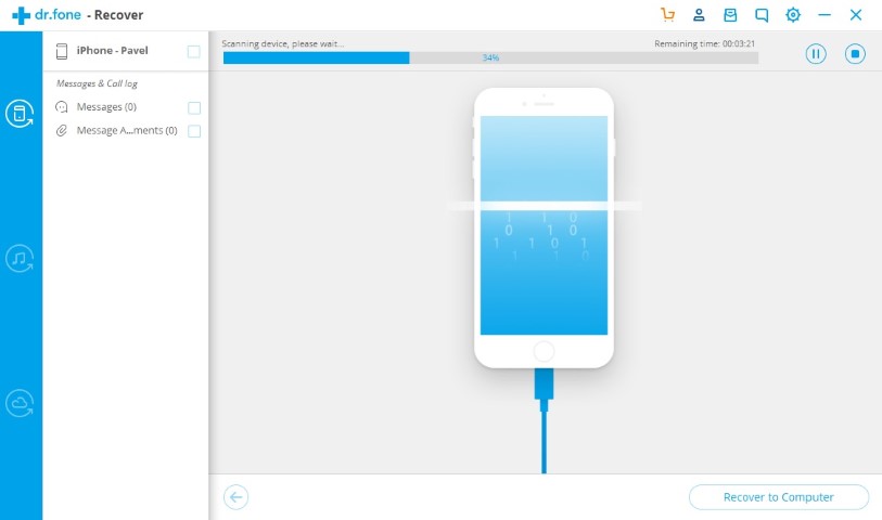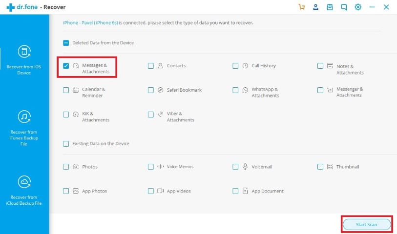 Z tohoto odkazu si koupíme a stáhneme program dr.fone Recover, po stažení aplikaci nainstalujeme. Program otevřeme a zvolíme možnost Recover. Poté připojíme telefon k počítači. V případě, že máme k počítači připojených více zařízení se nás program dotáže, které zařízení chceme připojit, zvolíme tedy iPhone. Po chvilce se zařízení připojí a na další obrazovce si můžeme zvolit, které soubory pro obnovení hledáme. V případě zpráv zvolíme Messages & Attachments (pro Messnger – Messenger & Attachments, atp.) Poté klikneme na Start Scan v pravém dolním rohu a vyčkáme, než se naše zařízení analyzuje. Po skončení analýzy se zařízení začne skenovat. Sken může nějakou dobu trvat. Nezapomeňte, že po dobu skenování nesmíte zařízení odpojit z počítače. Jakmile se sken dokončí, jednoduše si zvolte, které zprávy a přílohy chcete obnovit do počítače a klikněte na Recover to Computer. Nyní už stačí jen zvolit cestu, kde se obnovené soubory zkopírují a je hotovo.