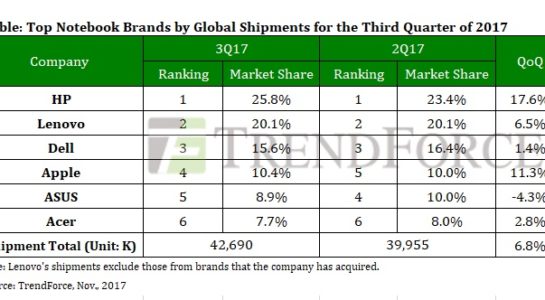 A kdo že vlastně trhu s notebooky vládne? Jak můžete vyčíst z tabulky, největší podíl na trhu drží v tuto chvíli společnost HP, která si oproti minulému čtvrtletí poměrně solidně polepšila. Druhé místo pak náleží Lenovu, které si však drží podíl stále stejný. Dell na třetí příčce si však oproti předchozímu čtvrtletí dokonce mírně pohoršil.