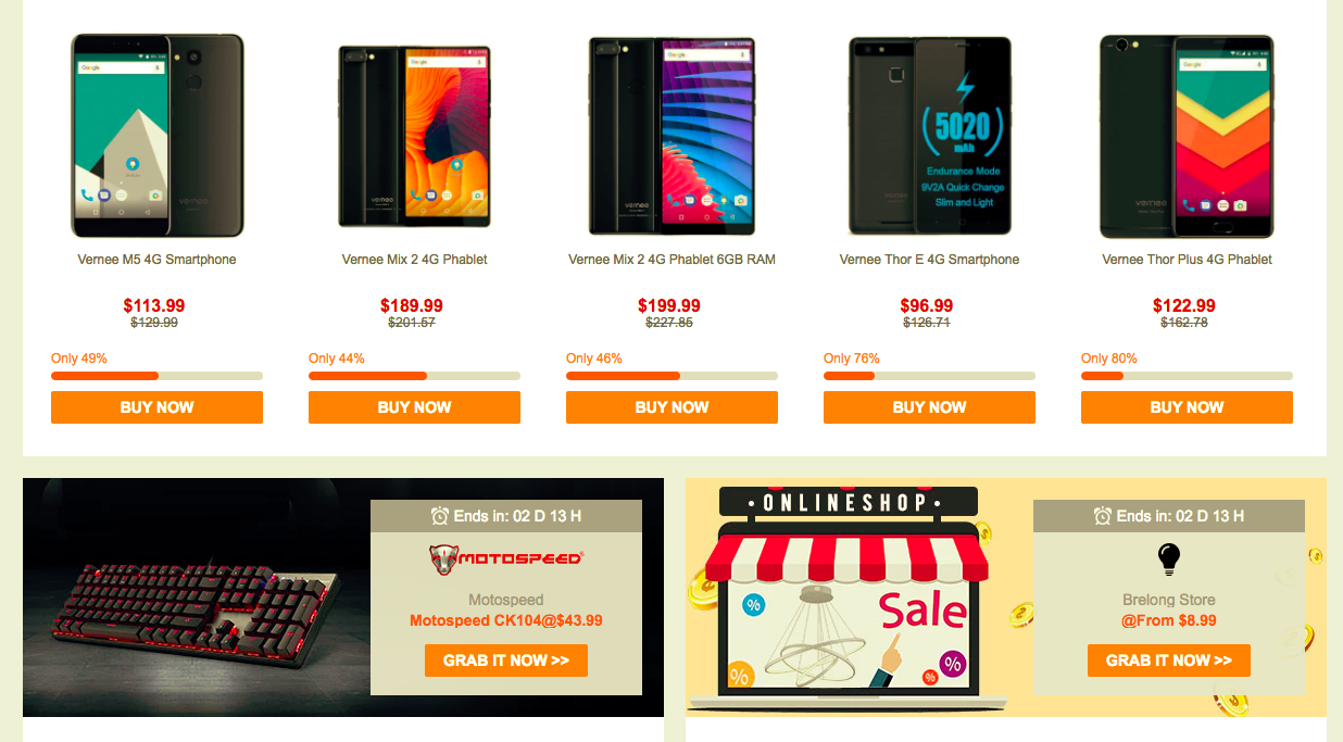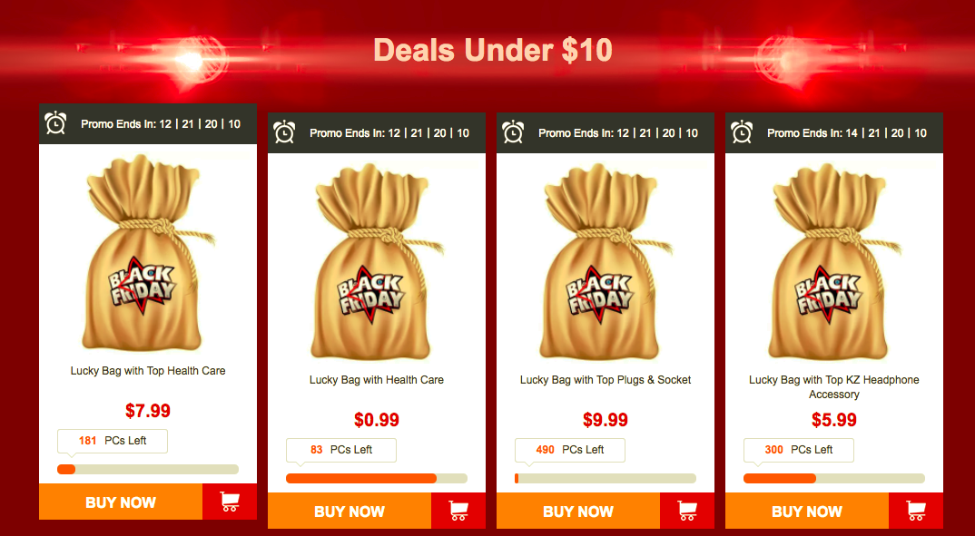 Server GearBest se snaží svým zákazníkům zprostředkovat v rámci Black Friday co nejlepší zážitek z nakupování. Každoroční nabídka zahrnuje širokou škálu kategorií včetně smartphonů, oblečení, tabletů, laptopů, hraček a dalšího zboží. Každá kategorie má svou vlastní stránku: