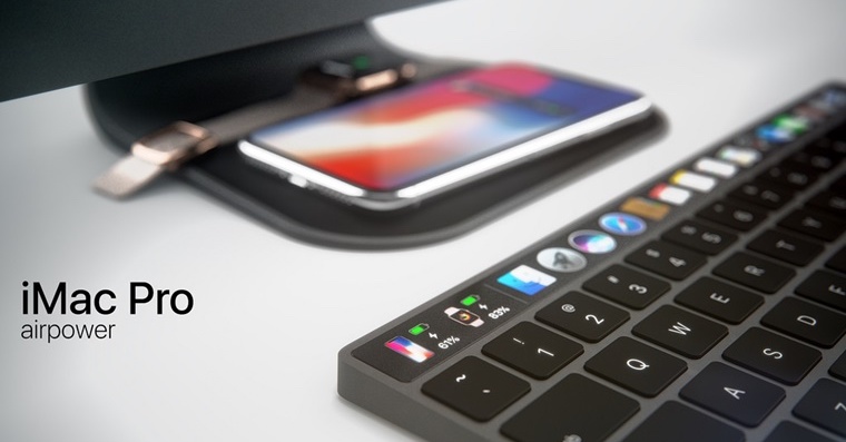 Apple se na zářijové konferenci jen letmo zmínil o bezdrátové nabíjecí podložce AirPower, která dokáže nabíjet tři zařízení zároveň, a to konkrétně iPhone X (respektive iPhone 8 či iPhone 8 Plus), Apple Watch Series 3 a AirPods. Přestože se jablečná podložka dostane do prodeje až během příštího roku, grafik s českými kořeny ukazuje koncept, jak by mohl Apple integrovat AirPower na iMac.