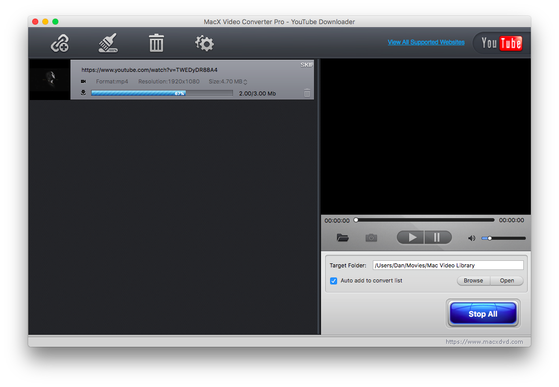 Na MacX Video Converter Pro se vám ale ze všeho nejvíce bude jistě líbit, že umí stahovat videa z YouTube, Facebooku a 300 dalších stránek. Videa pak lze převádět z YouTuber na MP3 a nahrávat si je můžete rovnou do iPhonu, iPodu nebo kteréhokoli jiného zařízení. Aplikace podporuje stahování v nejvyšší kvalitně, kterou stahované video nabídne a vybrat si můžete z několika formátu a rozlišení.