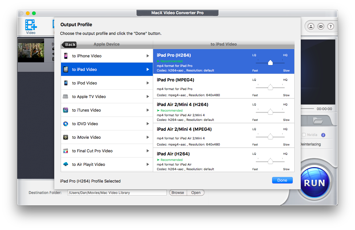 Jednou z největších předností programu je právě podpora 4K UHD, kdy s programem můžete videa v tomto rozlišení snadno upravovat nebo převádět z MKV nebo M2TS, které Apple nativně nepodporuje, do jiných formátů, které jsou jablečnými zařízeními podporovány. MacX Video Converter Pro podporuje i kvalitní kompresi, tudíž je možné 4K video efektivně zmenšit prosnadný upload. Zajímavá je o podpora upscalingu, kdy z Full HD videa snadno uděálte video ve 4K, které pak můžete nahrát na YouTube nebo si jej přehrát například na UHD televizi.