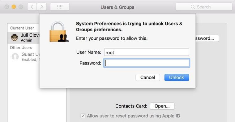 - Do tabulky, která by vám měla po potvrzení příkazu vyskočit, vyplňte heslo správce Macu a opět potvrďte