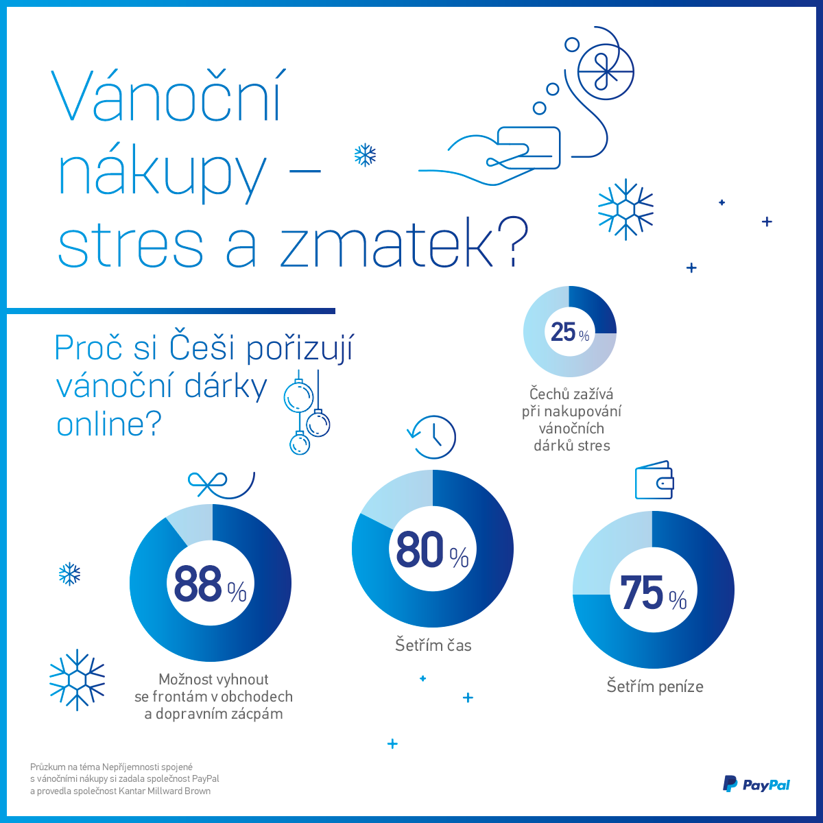 Sváteční čas obvykle pokládáme za cenný a radostný, vánoční přípravy a nákupy jsou ale pro mnoho lidí zdrojem psychické nepohody. Z výsledků průzkumu zpracovaného pro společnost PayPal vyplývá, že stres o Vánocích zažívá 25 % Čechů – to je mezi evropskými národy jedno z nejvyšších čísel. Často se obávají, že nedokážou najít dárek podle svých představ (34 %). Mají také strach, že nevyberou ten správný dárek (36 %), neudrží rozpočet pod kontrolou (36 %) nebo budou dárky nakupovat na poslední chvíli (42 %). Mezi dalšími faktory, které zbavují vánoční atmosféru radostného chvění, uváděli respondenti dopravní zácpy a davy v ulicích. Přiznávali, že ty je obzvláště nervují (58 %). V zemích sousedících s Českem je nálada spojená s vánočními nákupy podobná – negativní pocity zažívá třetina Poláků a necelá pětina Maďarů.