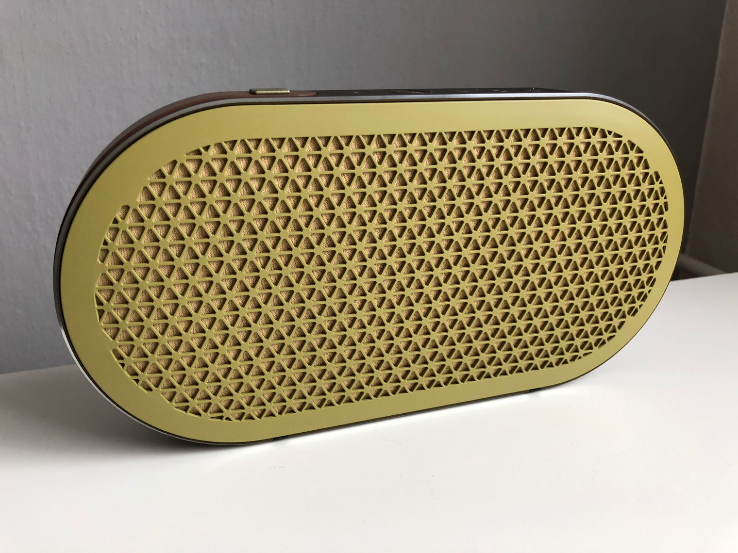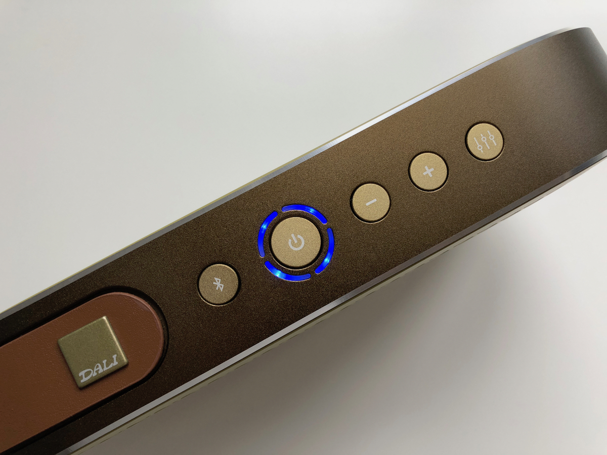 Právě toto nenápadné tlačítko je velmi zajímavé. Nefunguje totiž tak, že byste si přepínali mezi desítkami předvolených nastavení v rámci ekvalizéru podobně jako u iPhonu. Tlačítkem totiž přepínáte mezi dvojicí režimů. Zatím co jeden slouží pro poslech v momentě, kdy je Dali Katch umístěn na stole nebo uprostřed místnosti, druhý využijete v momentě, kdy reproduktor umístíte poblíž stěny, jenž následně používá k odrazu zvuku. Za zmínku stojí i čtveřice diod okolo umístěných okolo power tlačítka, které informují o probíhajícím procesu párování, o změně hlasitosti a pak hlavně o zbývající úrovni baterie.