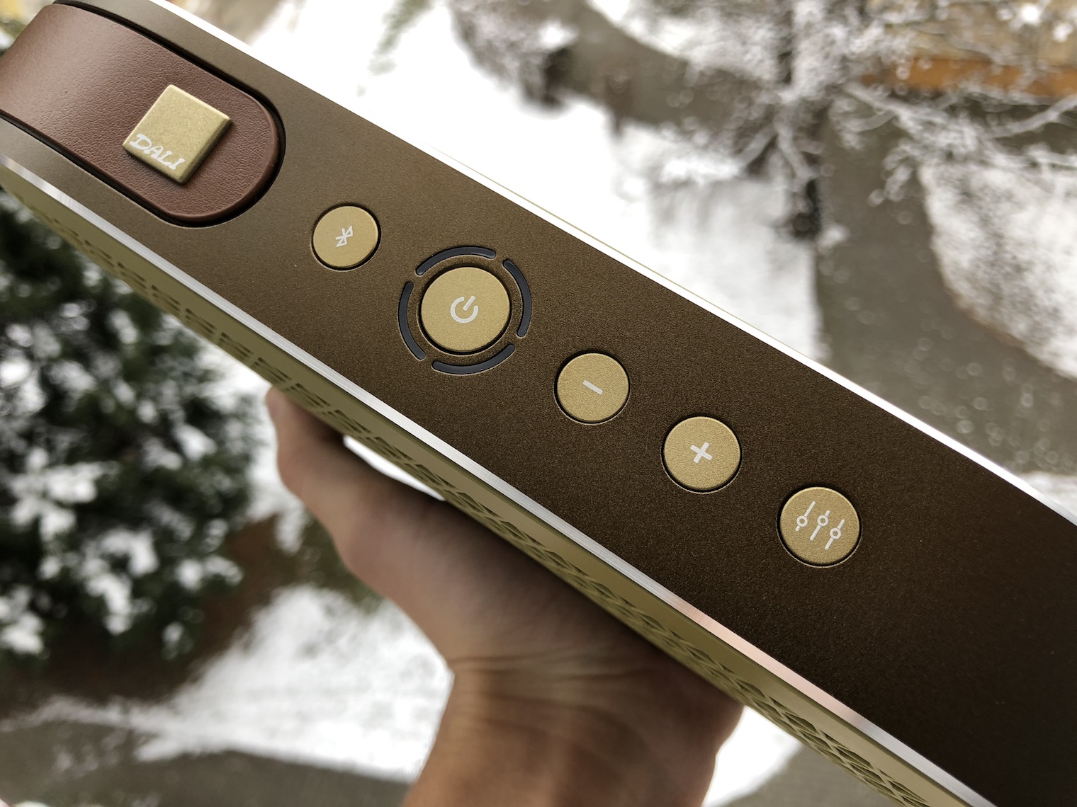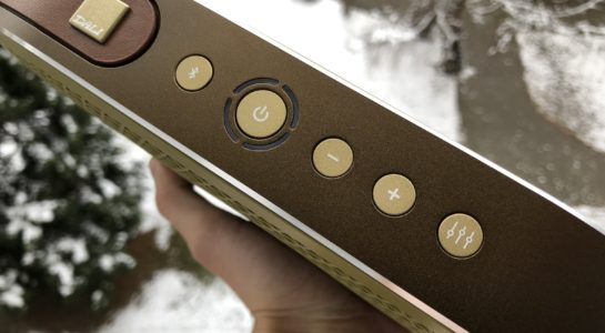 Dali Katch v sobě integruje kožené poutko na přenášení, které najdete na boční straně u těla reproduktoru. Jakmile však přijde jeho čas můžete jej snadno vysunout a repráček za něj přenášet. Dalším zajímavým prvkem jsou pochopitelně tlačítka, která se nachází na horní straně reproduktoru a můžete je používat pro změnu hlasitosti, zapnutí/vypnutí reproduktoru, spárování s Bluetooth a také pro změnu ekvalizéru.