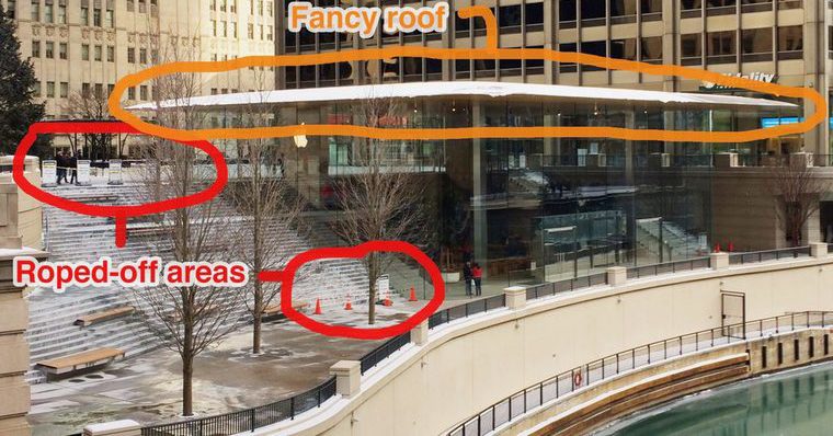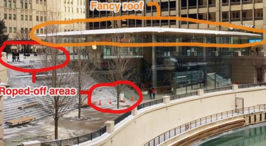 Apple v říjnu loňského roku otevřel brány chicagského Apple Storu, jehož celkové pojetí je velmi zajímavé. Vlajková loď mezi prodejnami má pozoruhodnou střechu ve tvaru zavřeného MacBooku Air. Nicméně začátkem tohoto týdne jsme vás informovali o tom, že netypická střecha má i svou stinnou stránku.