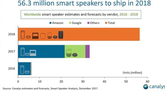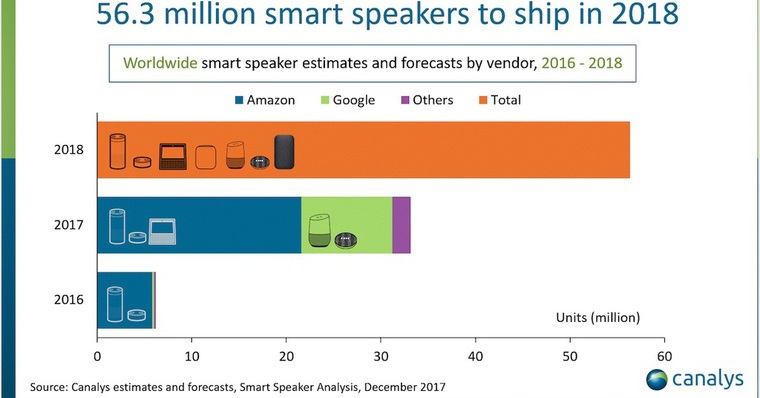 Lucio Chen ze společnosti Canalys uvedl, že zájem o inteligentní reproduktory roste rychleji než zájem o jakoukoliv jinou spotřebitelskou technologii, včetně rozšířené reality, virtuální reality a nositelných zařízení.