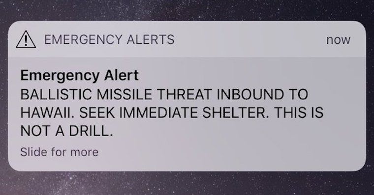 Obyvatelé exotického Havaje si budou pamatovat na sobotu 13. ledna ještě hodně dlouho. Zničeho nic jim totiž přistála na jejich iPhony zpráva, že hrozí celému ostrovu kvůli odpálení balistických raket velké nebezpečí a je potřeba vyhledat úkryt. Na věrohodnosti dodávalo celé zprávě i to, že v ní stálo, že se v tomto případě nejedná o cvičení. Nakonec se však ukázalo, že důvod k obavám nebyl.