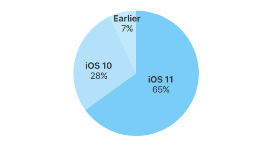 Apple na své webové stránce podpory pro vývojáře aktualizoval informace o tom, jak si daří systém iOS 11 mezi uživateli. Podle nejnovějších informací je iOS 11 nainstalován na 65 % zařízení. Apple naposledy aktualizoval webovou stránku začátkem prosince, kdy byl iOS 11 nainstalován na 59 % zařízení. Znamená to tedy, že za měsíc a půl se zvýšil počet jablečných zařízení s iOS 11 pouze o 6 %.