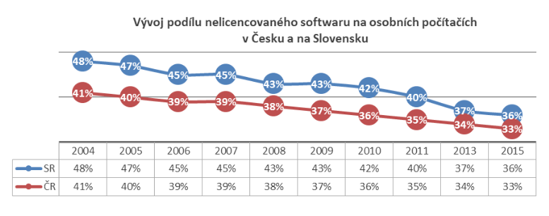 Podle společnosti Business Software Aliance (BSA) je každý třetí program kradený a podle nejnovější analýzy přicházejí výrobci každoročně nejméně o 3,6 miliard korun. Pozitivní informací je však to, že míra pirátství v České republice rok od roku klesá. V podnikové sféře jsou však nyní velmi oblíbené padělky. BSA upozorňuje, že náhrada škody se pohybuje okolo 390 tisíci korun.