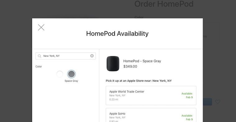 Ačkoliv by měl mít Apple podle dostupných informací na skladě zhruba jen milion kusů této nové hračky a předobjednávky odstartovaly už v pátek v USA, Austrálii a Velké Británii, eshop jablečné společnosti hlásí i při psaní tohoto článku, že je HomePod dostupný již 9. února, tedy v den, kdy jej dostanou i zákazníci, kteří si jej objednali už v pátek. Ať si vyberete bílou či šedou variantu, Apple vám ji bez problému doručí.