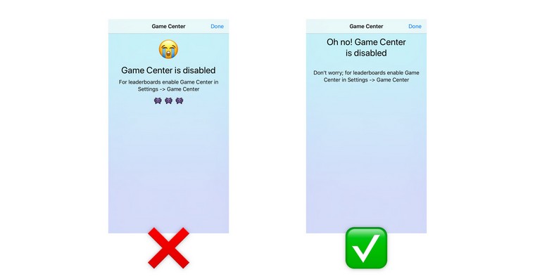 Jako ukázkový příklad uvedla Emojipedia iOS aplikaci Reaction Match, která používala symbol plačícího obličeje v herním centru. Jakmile se objevila hláška Game Center is disabled, byl nad ní plačící smajlík, což se ovšem cupertinské společnosti nelíbilo, a proto aplikaci nepustila do svého obchodu s aplikacemi. V okamžiku, kdy vývojář Eddie Lee odstranil všechny emoji z aplikace, dostala aplikace zelenou a najednou se v App Storu objevila.