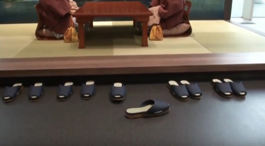Pokud máte podobný problém jako já, že necháváte své pantofle mnohdy ležet uprostřed místnosti a jste líní je uklidit do řady mezi ostatní přezůvky, měli byste vyzkoušet papuče od Nissanu, které se díky technologii ProPILOT Park samy zaparkují do řady ostatních bot. Jedná se sice jen o propagační akci v jedné tradiční japonské čajovně, ale papuče fungují parádně. Dokonce parkovacího asistenta zabudovali i do polštářů a krabičky dálkového ovládání.