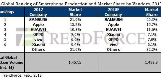 Na budoucnost trhu se smartphony se zaměřila výzkumná společnost TrendForce a ze svých analýz vyvodila poměrně zajímavé věci. Ačkoliv se totiž podle ní růst trhu v letošním roce ještě o něco málo zpomalí, dva nejsilnější hráči na něm si budou vést pořád slušně. Jihokorejský Samsung, který ovládá světový trh s 21,9 % se však podle analytiků lehce propadne a na konci roku si připíše podíl na trhu ve výši 20,3 %. Nebude to však tím, že by se mu v prodejích nějak zvlášť nevedlo. To jen Apple v tomto roce slušně povyroste a z nynějších 15,2 % se vyhoupne minimálně na 15,7 %, ne-li více.
