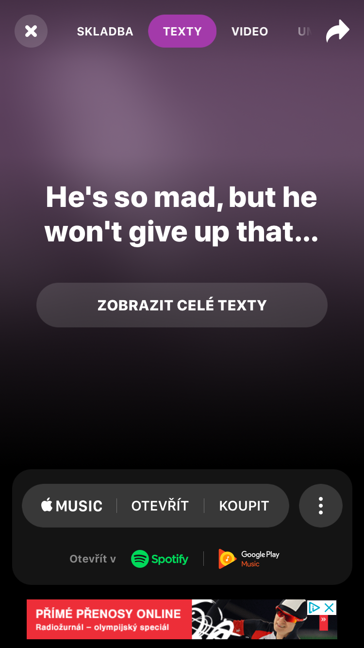 Ano, čtete dobře. Pokud si nově přes Shazam vyhledáte skladbu a ta vám v pozadí stále hraje, v sekci Texty se vám bude zvýrazňovat vždy ta pasáž, kterou umělec právě v písni zpívá. Z osobní zkušenosti můžu říci, že je tato novinka opravdu zajímavá a pro mnohé uživatele bude jistě přínosná. Když totiž pominu možnost notovat si s mým oblíbeným zpěvákem společně píseň, může sloužit tato funkce v Shazamu například i na zlepšení cizího jazyka, který slyšíme a zároveň si ho můžeme i číst a utvrzovat se v tom, zda jsme správně rozuměli. Bohužel je však zatím synchronizace textů ne zcela dokonalá a pokud skladbu například zastavíte, text ve Shazamu poběží dál. To by se ale mohlo v budoucnu změnit.