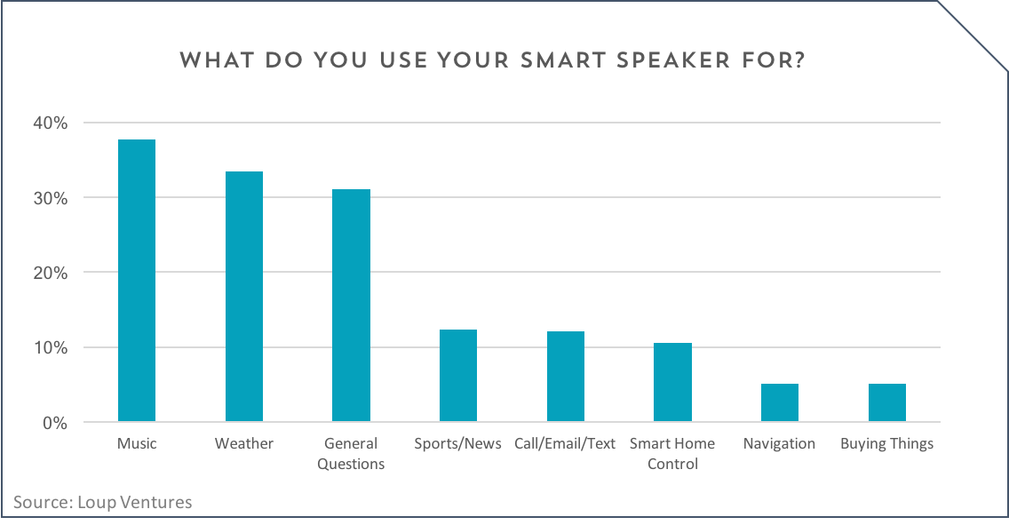 Společnost pro svůj průzkum oslovila přesně 520 spotřebitelů v USA, ze kterých jim 31 % dotázaných potvrdilo, že doma nějaký chytrý reproduktor má. U těchto zákazníků pak převládá z velké části asistent Amazon Echo, jehož vlastní na 55 % zákazníků, následuje jej Google Home s 23 %, Microsoft Cortana s 15 % a konečně HomePod se 3 %. Zbylá 4 % pak obsahují ostatní reproduktory, které nebyly mezi uživateli hojně zastoupeny.
