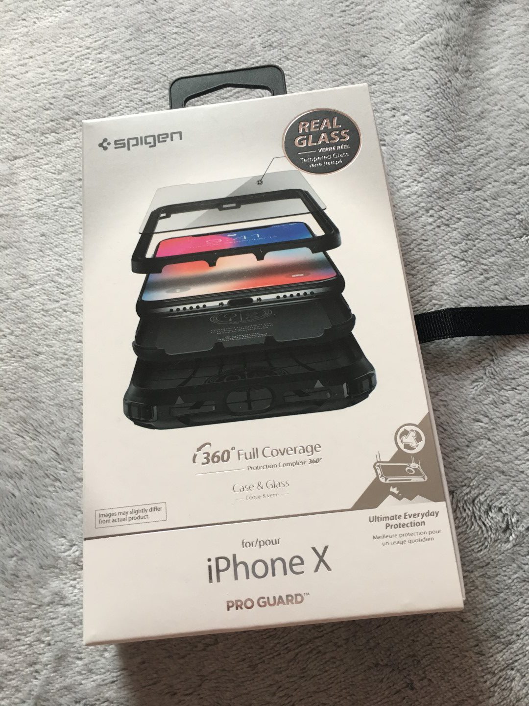 Balení obou krytů je víceméně stejné, a proto tento odstavec nebudu rozdělovat pro každý kryt zvlášť. Pokud by vás zajímalo, jak vypadá jednotlivé balení každého krytu, můžete tak učinit v galerii níže, kde je celé balení krytů nafoceno zvlášť. Pokud se rozhodnete objednat si jeden z krytů Pro Guard nebo Reventon, přijde vám světlá krabička, která na přední straně nese označení krytu. Co je zajímavé, je skutečnost, že na přední straně krabičky naleznete obrázek, který zobrazuje celou konstrukci krytu. Na zadní straně se nachází, jak už to bývá zvykem, informace o krytu v různých jazycích. První věc, kterou po otevření krabičky uvidíme, je kryt v celé své kráse. Kryt můžeme vytáhnout společně s plastovým držákem. Pod ním se totiž nachází menší papírová krabička, ve které se nachází dva kusy skla na displej iPhonu X. Ano, doopravdy dostanete ke každému obalu dvě skla a je jen na vás, jak s nimi naložíte. Pokud však sklo nalepíte ihned před nasazením krytu, můžete se těšit na téměř 360º ochranu celého zařízení, o tom ale v dalším odstavci.