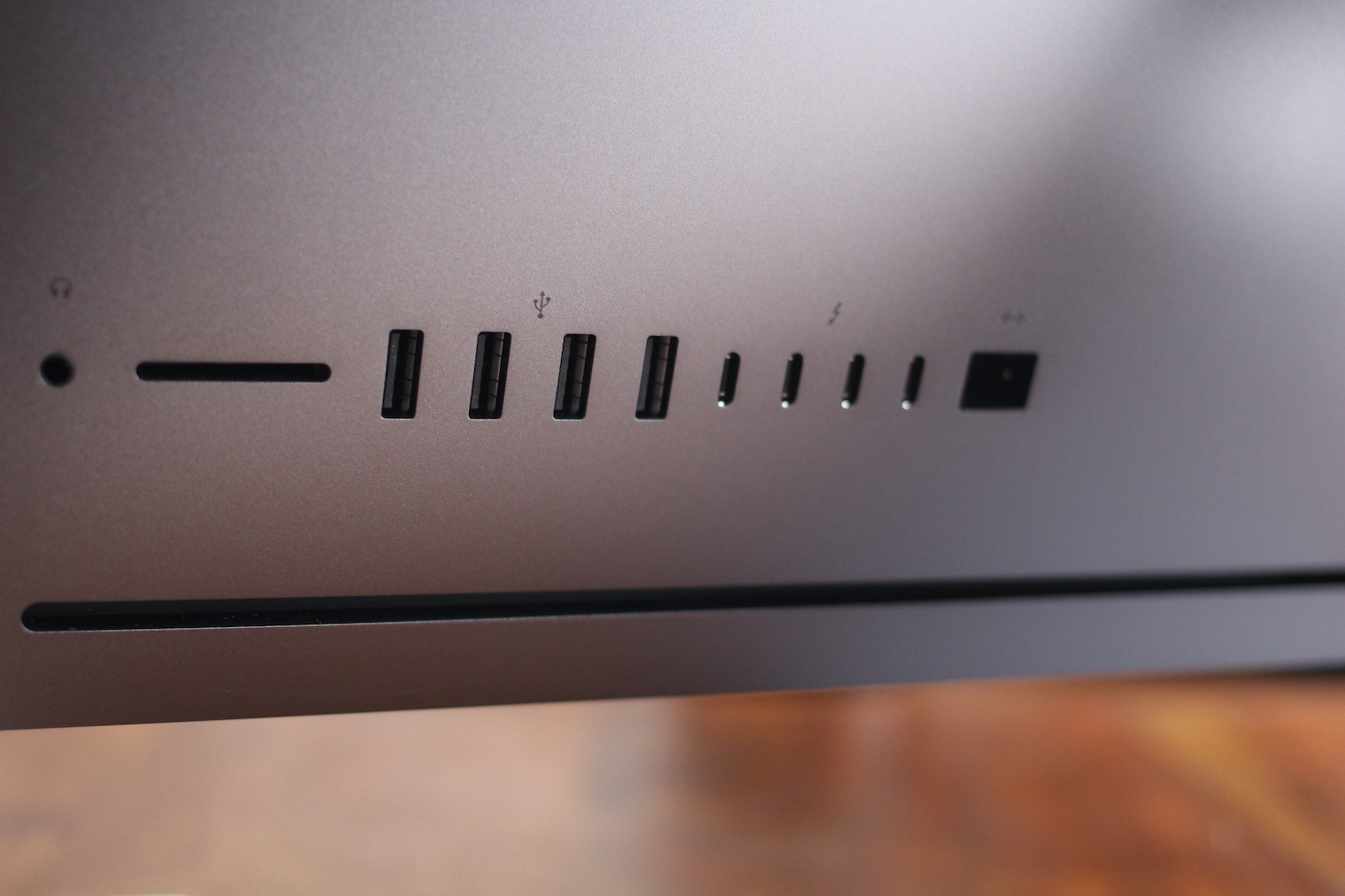 Na zadní straně nejvýkonnějšího počítače společnosti Apple naleznete čtveřici USB 3.1 portů druhé generace s přenosovou rychlostí až 10 Gb/s, čtveřici Thunderbolt 3 portů v podobě USB-C konektorů s přenosovou rychlostí až 40 Gb/s, slot na karty SDXC s podporou pro UHS‑II a 10Gb Ethernet. V těle počítače pak najdeme také 802.11ac Wi-Fi a Bluetooth 4.2. Přijde mi trošku škoda, že když iPhone 8 může disponovat Bluetooth 5.0, nemohl Apple u svého nejvýkonnějšího a nejdražšího počítače nabídnout alespoň stejný standard jako má telefon, ale chápu, že o Bluetooth zde skutečně nejde. Naopak standardy typu 10Gb Ethernet nebo čtveřice Thunderbolt portů, ke kterým můžete připojit další dva 5K displeje s 60Hz frekvencí, nebo čtyři externí 4K UHD displeje s obnovovací frekvencí 60 Hz jasně ukazují, pro koho je počítač určen a co vše s ním můžete vybudovat.