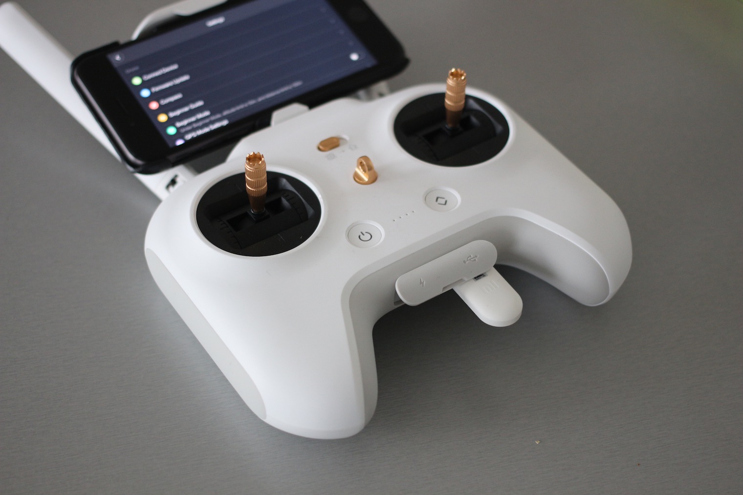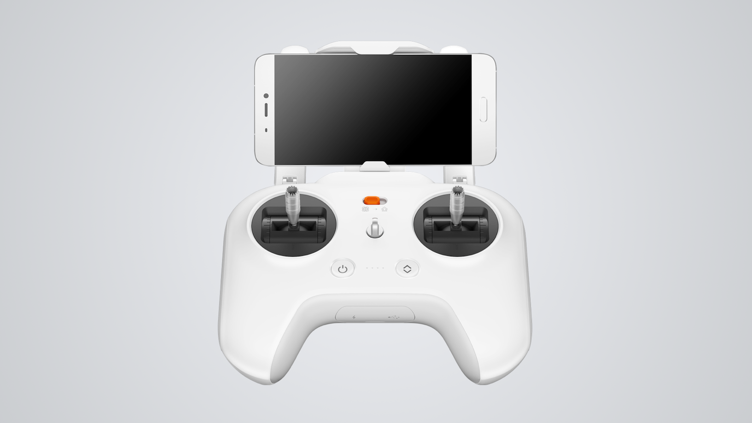 Vysílačka má dvojici Wi-Fi antén se kterými komunikuje s dronem a pochopitelně také stojánek na umístění telefonu nebo menšího tabletu. Jedinou nevýhodou je fakt, že zatím co Wi-Fi se kterou se připojuje vysílačka k dronu je pochopitelně integrována do samotné vysílačky, Wi-Fi pro komunikaci vysílačky s mobilním telefonem musíte připojit jako modul do USB ve vysílačce. Modul je sice součástí balení, ale rozhodně se nedá mluvit o nějaké eleganci a je v podstatě již jedno zda vám z vysílačky trčí kabel přes který se připojíte k telefonu nebo Wi-Fi modul v podobě flash disku.