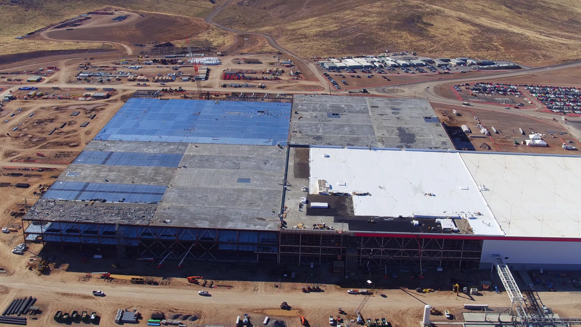 Na začátku loňského roku oznámila americká automobilka Tesla, že chce provoz své největší továrny na akumulátory, Gigafactory, kompletně napájet solárními panely, které budou nainstalovány na střeše budovy. Jak můžete vidět z galerie níže, společnost se již pustila do práce. Až bude Tesla hotová, měla by vzniknout ta největší střešní farma na celém světě s výkonem 70MW.