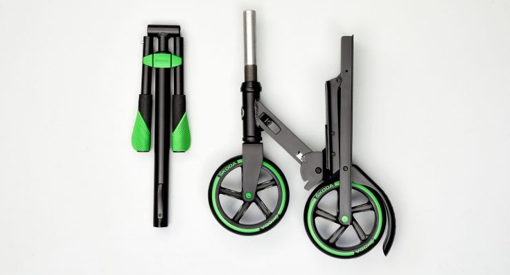 Představte si to spojení. Zaparkujete v Praze na nejbližším parkovišti od kanceláře, ale stále vám zbývá kilometr chůze. Z auta tedy vytáhnete složenou koloběžku, na které dojedete až na místo určení. Poté ji jen složíte a uklidíte. Přesně s tímto nápadem přichází automobilka Škoda, která na autosalonu v Ženevě představila koncept své skládací koloběžky.