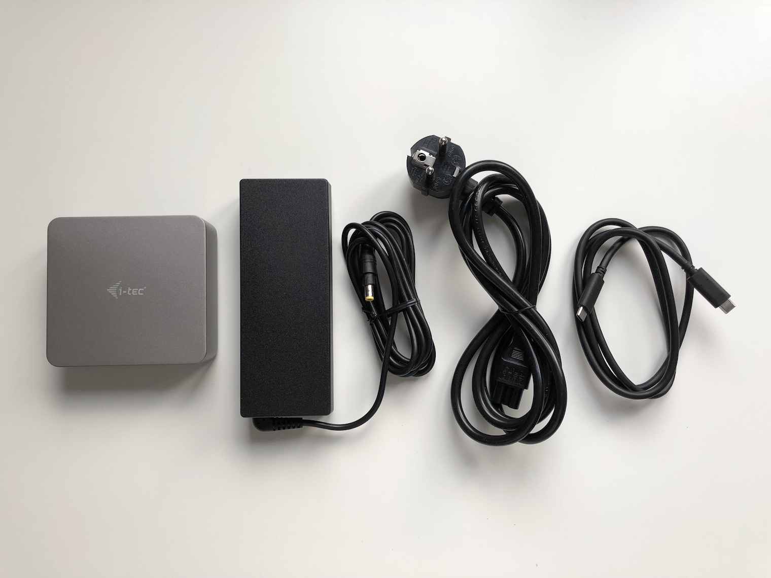 V balení kromě samotné dokovací stanice najdete 100W napájecí adaptér s kabelem o délce 2 metry, síťový kabel o stejné délce a nakonec metrový USB-C kabel k propojení stanice s MacBookem. Adaptér s kabelem sloužící pro nabíjení stanice je poměrně těžký a neskladný, a tak se příliš nehodí jej brát s sebou na cesty, avšak má to i své opodstatnění. Díky němu je totiž dock schopný napájet počítač výkonem až 85 W, což znamená, že bezproblémově dodá energii i 15″ MacBooku Pro. To osobně vnímám jako jeden z dalších benefitů stanice, protože již zmíněný dock od OWC, který je dvakrát tak dražší, zvládá dodat jen 60 W.