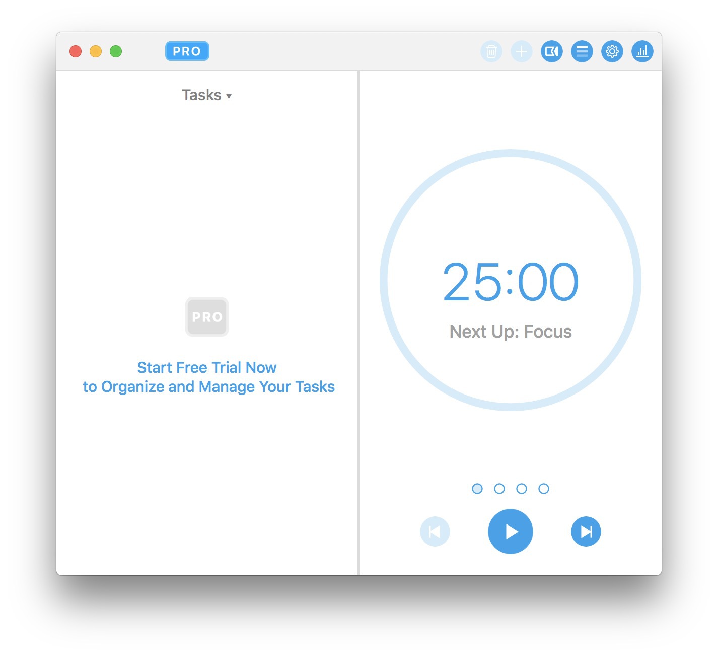 Některé funkce jsou k dispozici po zaplacení předplatného Focus Pro, ale to rozhodně stojí za zaplacení, pokud to se soustředěním a touto aplikací budete myslet vážně a pokud budete třeba používat i správu úkolů a sledování času na jednotlivých úkolech.