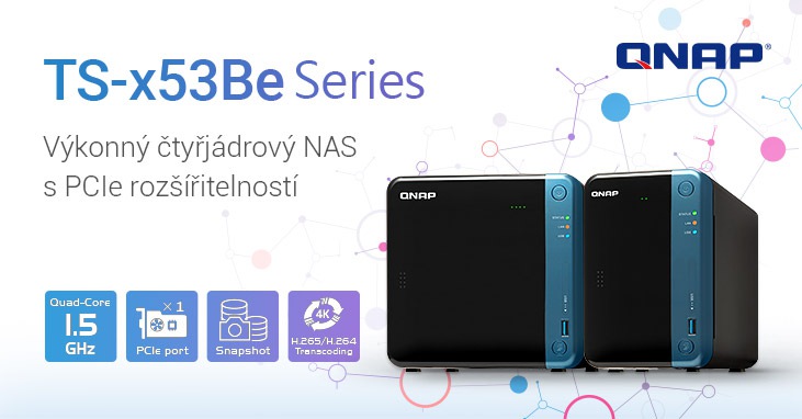 Společnost QNAP dnes představila čtyřjádrové modely s procesory Intel – 2-pozicový TS-253Be a 4-pozicový TS-453Be. S rozšiřujícím slotem PCIe lze funkce obou zařízení NAS rozšířit s ohledem na potřeby aplikací, a to včetně M.2 SSD cache a konektivity 10GbE. Model TS-x53Be také disponuje výstupem HDMI a překódováním 4K H.264/H.265 pro zajištění lepších multimediálních zážitků a podpora snímků pomáhá chránit data před potenciálními útoky ransomware.