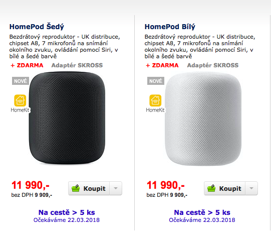 O tom, že má Alza HomePod na svých webových stránkách, jsme vás informovali již před nějakým časem. Na jejich webu se teď však objevily další informace, které zahrnují konečnou cenu a dostupnost tohoto produktu. Pokud si nyní HomePod na Alze objednáte, zaplatíte za něj 11 990 korun a obdržíte jej snad již příští týden, konkrétně 22. března.