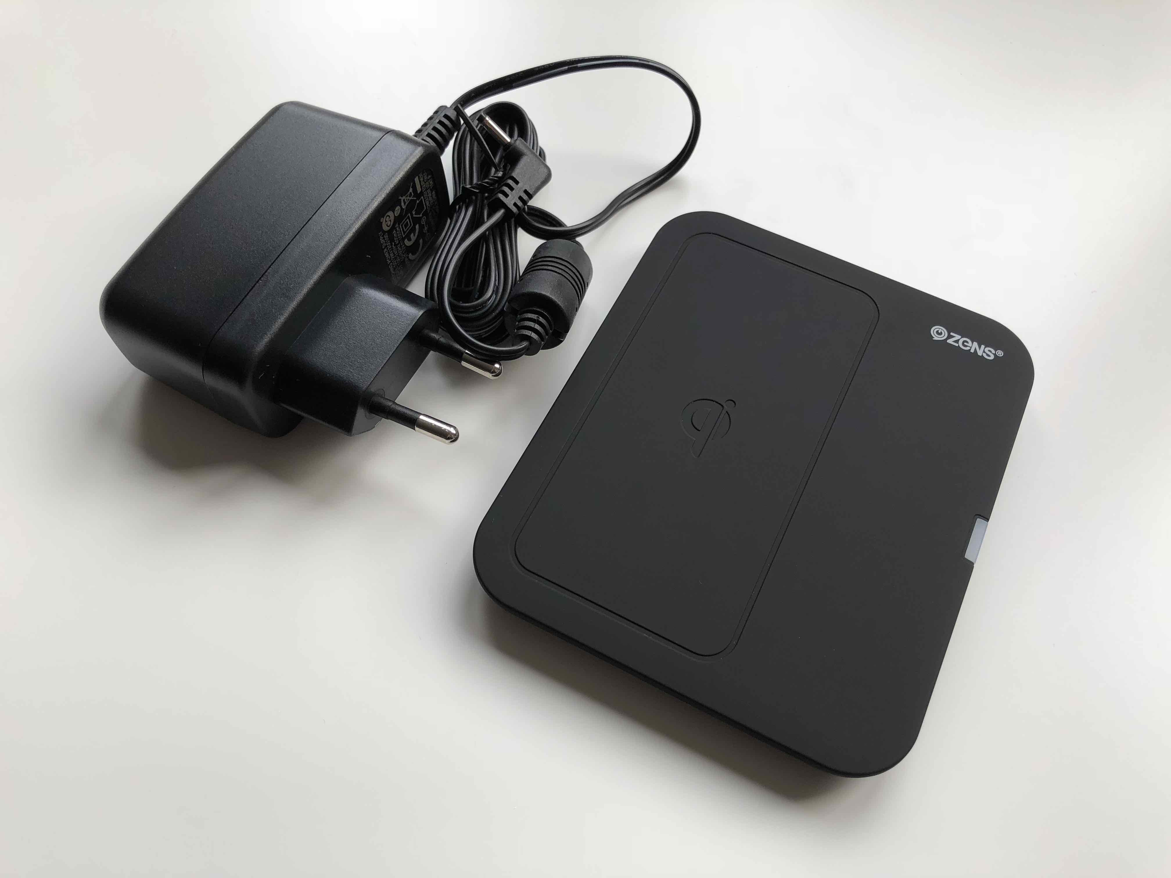 Druhým modelem je Zens ZESC02B. Jedná se o úplně klasickou podložku obdélníkového tvaru, která je opět vyrobena převážně z plastu s pogumovaným povrchem. Podobně jako její výkonnější sestřička má na spodku čtveřici protiskluzových podložek a na boku indikační diodu. Její velká výhoda však spočívá v tom, že je dodávána rovnou s příslušným adaptérem. Není tak potřeba nic dokupovat a jakmile vám nabíječka dorazí, můžete ji okamžitě začít používat a máte stoprocentní jistotu, že bude podávat maximální možný výkon. I díky tomu tak nedisponuje klasickým micro-USB, ale portem DC2.5, do kterého pasuje koncovka kabelu od adaptéru.