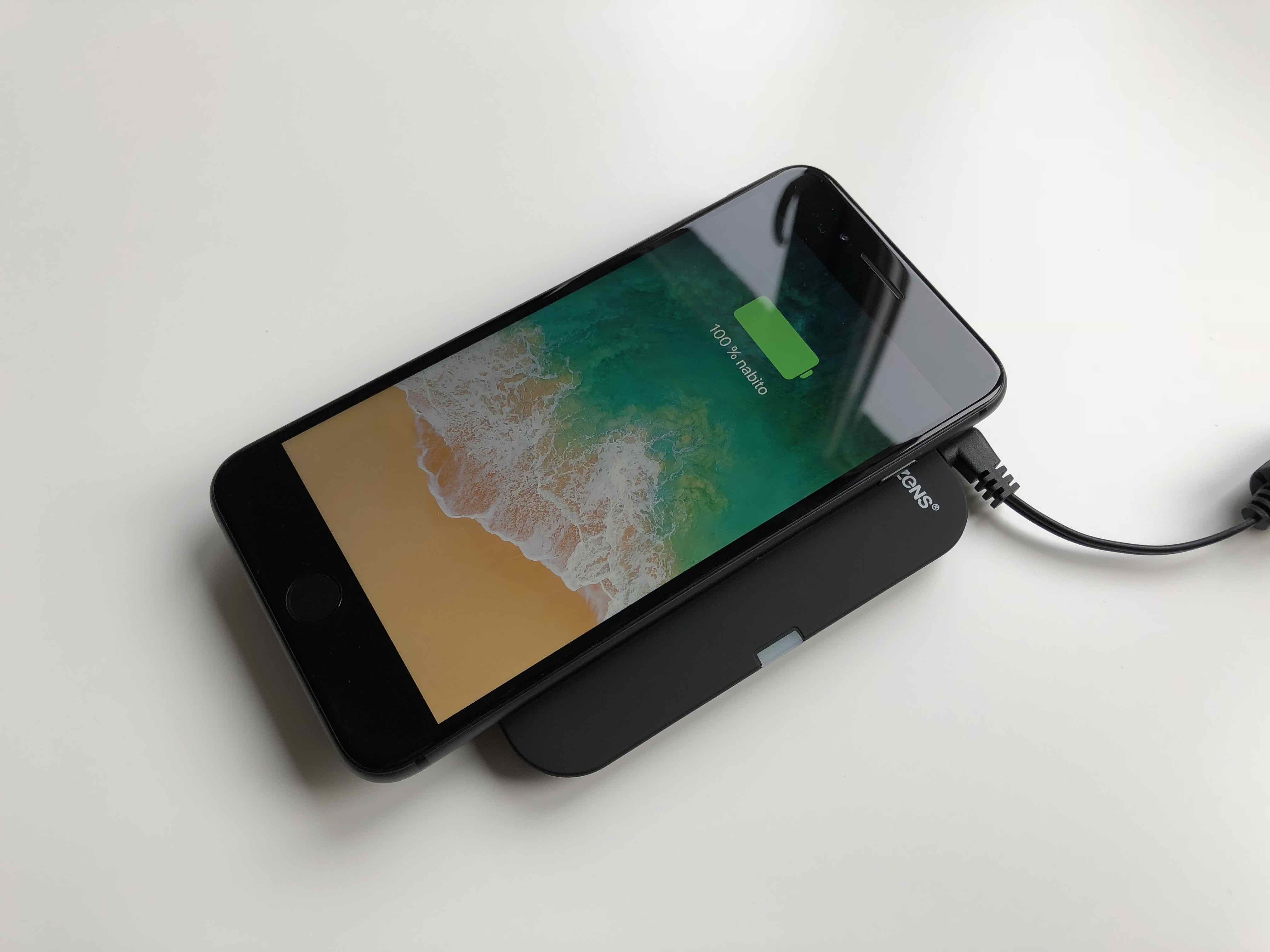 Už na základě velikosti je více než jasné, že podložka nepodporuje rychlé bezdrátové nabíjení. Podle dokumentace je schopna dodat výkon 5 W, tedy stejně jako standardní adaptér od Applu. Nicméně efektivita bezdrátového nabíjení je o něco menší, a tak i výsledná rychlost dobíjení je o něco nižší. V balení najdeme jenom micro-USB kabel, tudíž opět musíme sáhnout po vlastním adaptéru. Stačit však bude například nabíječka od iPadu, která má dostatečný výkon. I přes absenci adaptéru a podpory rychlého nabíjení se ale jedná o zajímavou podložku, která na stole působí nenápadným dojmem, je skladná a snadno přenosná. Kupodivu i na své malé rozměry se na ní iPhone nabíjí zcela bezproblémově a není potřeba hledat ideální polohu, zkrátka funguje za všech okolností.
