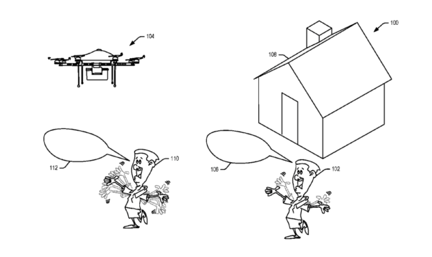 Nudné nákresy patentů nejspíš už všichni známe velmi dobře. Nový patent od Amazonu však z tohoto všedního stereotypu vystoupil a je doplněn o zajímavou kresbu, která vypadá, jako by ji někdo vystřihl z nějakého komiksu. Navrhovaný dron v tomto patentu má údajně rozpoznat lidská gesta a pak na ně vhodně zareagovat. Mezi taková gesta může patři například mávání, ukazování, volání nebo svícení baterkou.