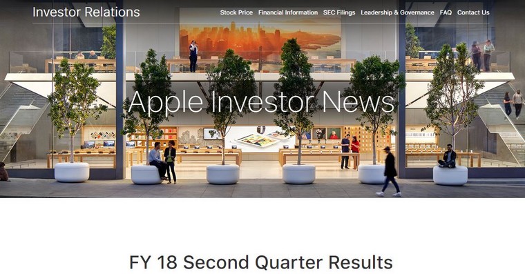 Apple aktualizoval svou webovou stránku o vztazích s investory a oznámil, že se v úterý 1. května podělí o své finanční výsledky za druhé fiskální čtvrtletí (tedy první kalendářní čtvrtletí) roku 2018. Apple tak ukáže, jak si vedly iPhone 8, iPhone 8 Plus a iPhone X po svém rekordním prvním fiskálním čtvrtletí, kdy Apple prodal celkem 77,3 milionů iPhonů.