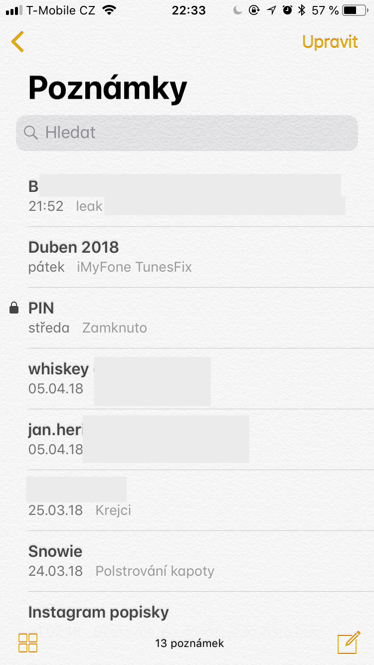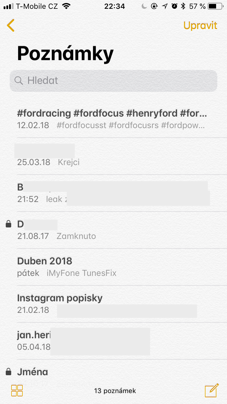 Osobně si myslím, že je z těchto tří možností nejlepší možnost řazení dle data vytvoření. Neustále totiž vytvářím nové poznámky a většinou potřebuji, abych právě ty nejnovější měl po ruce. A navíc, když potom náhodou upravím starší poznámku, jsem zvyklý na její umístění níže v seznamu. Několikrát se mi už s výchozím nastavením řazení stalo, že jsem upravil starou poznámku a později jsem ji nemohl najít, protože byla v seznamu mezi prvními. Na rozdíly ve všech třech možnostech řazení se můžete podívat níže v galerii.