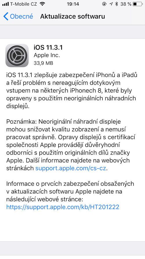 Aktualizaci na iOS 11.3.1 provedete na svých iPhonech či iPadech klasicky přes Nastavení – Obecné – Aktualizace softwaru.