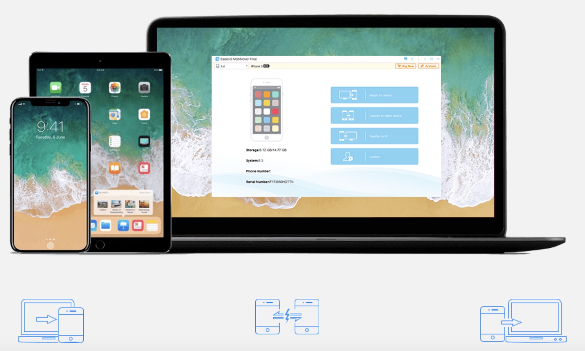 Přesně tyto tři slova jsou slova, kterými se MobiMover chlubí a zároveň nimi doopravdy i disponuje. Jak už jsem několikrát zmínil, pokud vysloveně nechcete, za program nemusíte zaplatit ani korunu a nepřijdete o jakékoliv zásadní funkce programu. MobiMover je samozřejmě neprogramován vývojáři z EaseUS tak, aby byl program co možná nejrychlejší a reagoval okamžitě. A posledním slovem je jednoduchost, což bývá u těchto programů nejdůležitější. Pomocí tří jednoduchých kroků můžete provést přesunutí dat kamkoliv chcete.