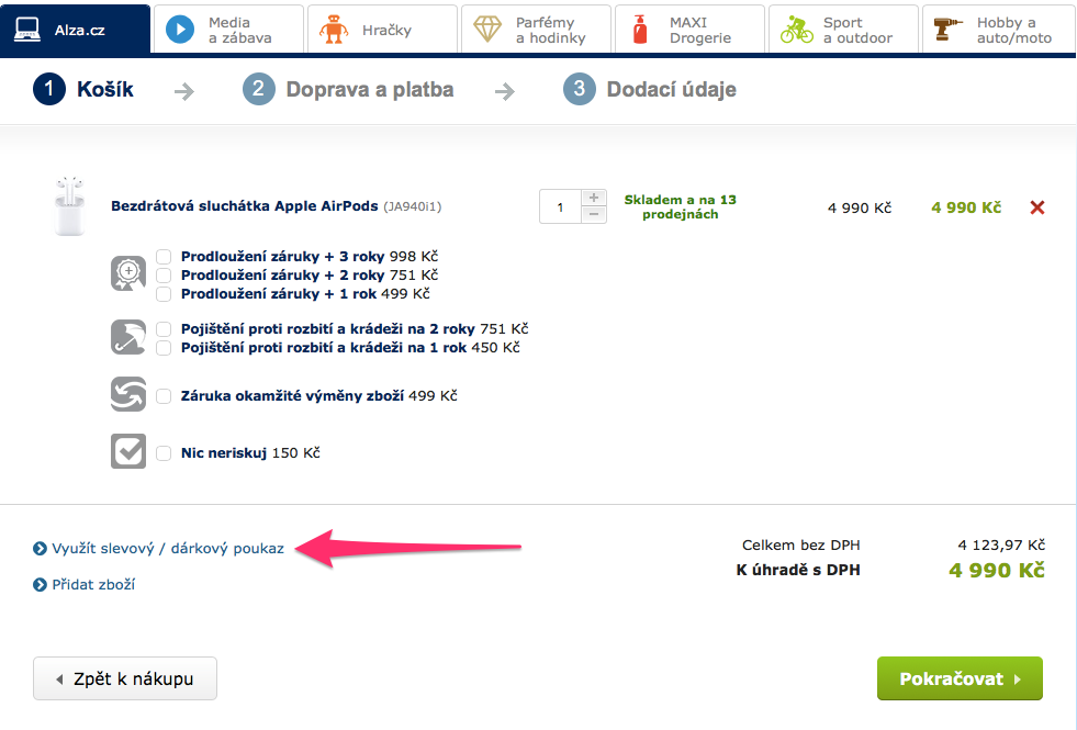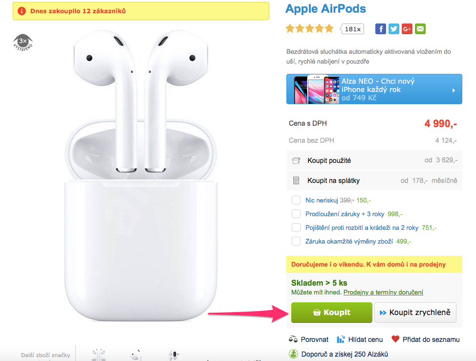 Jak už jsem psal v úvodním odstavci, Apple si tyto sluchátka cení na 4990 korun, což rozhodně není málo. Alza.cz si pro vás však připravila parádní akci, díky které 15 z vás získá tyto sluchátka za pouhých 3790 korun, tedy o 1200 korun levněji. Tuto slevu získáte po zadání kódu LSAAPPLEAIRPODS do objednávky na jejím eshopu. Jak už jsem však psal výše, nabídka je kusově omezená a platí pouze pro prvních 15 nákupů (nebo do nedělní půlnoci, pokud by se kódy nevyčerpaly). Po prodání 15 kusů AirPods se totiž kód automaticky zablokuje a sluchátka se začnou prodávat opět za běžných 4990 korun. Rozhodně tedy nad nákupem neváhejte. A jen tak mimochodem, cena, kterou pro vás Alza připravila, je nejnižší na českém trhu. Veškeré podmínky této akce si pak můžete přečíst přímo zde.