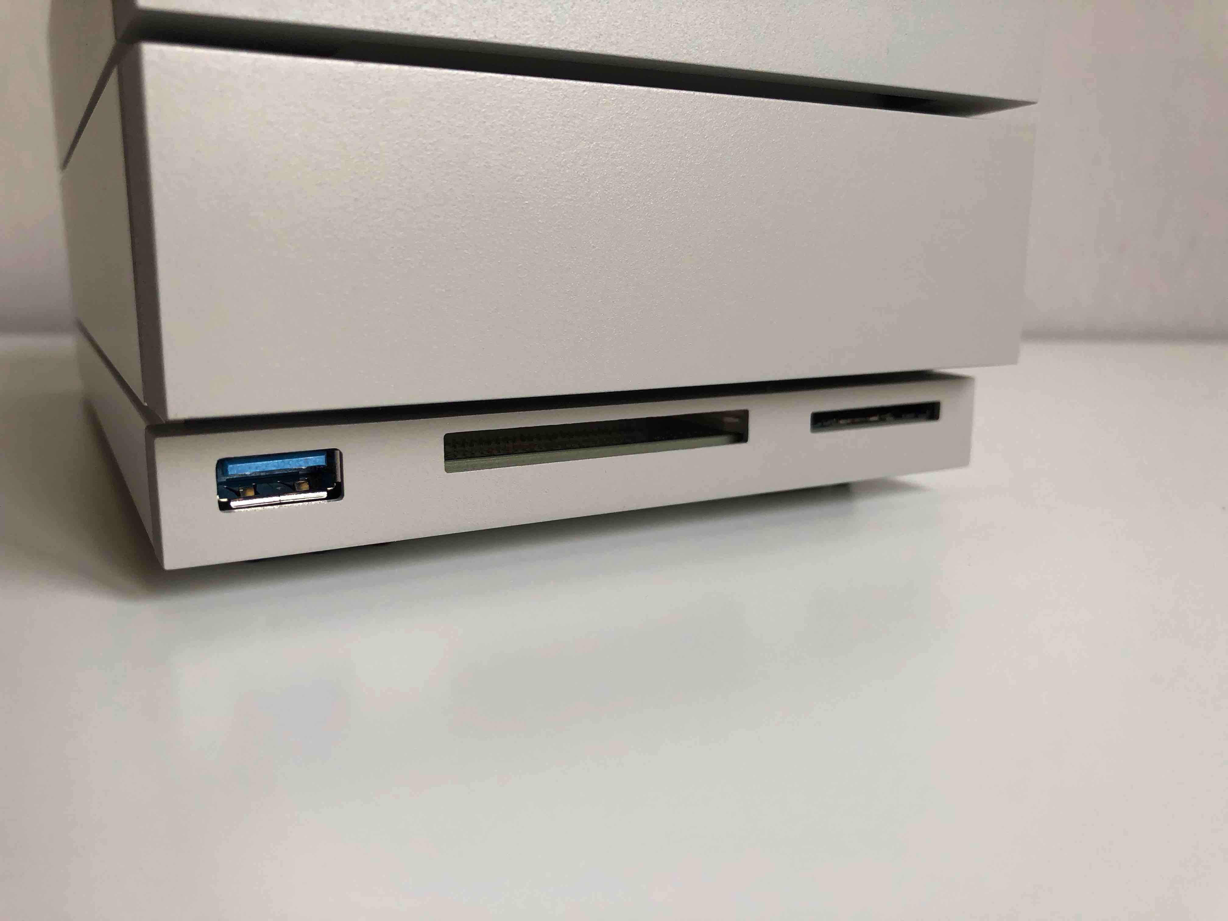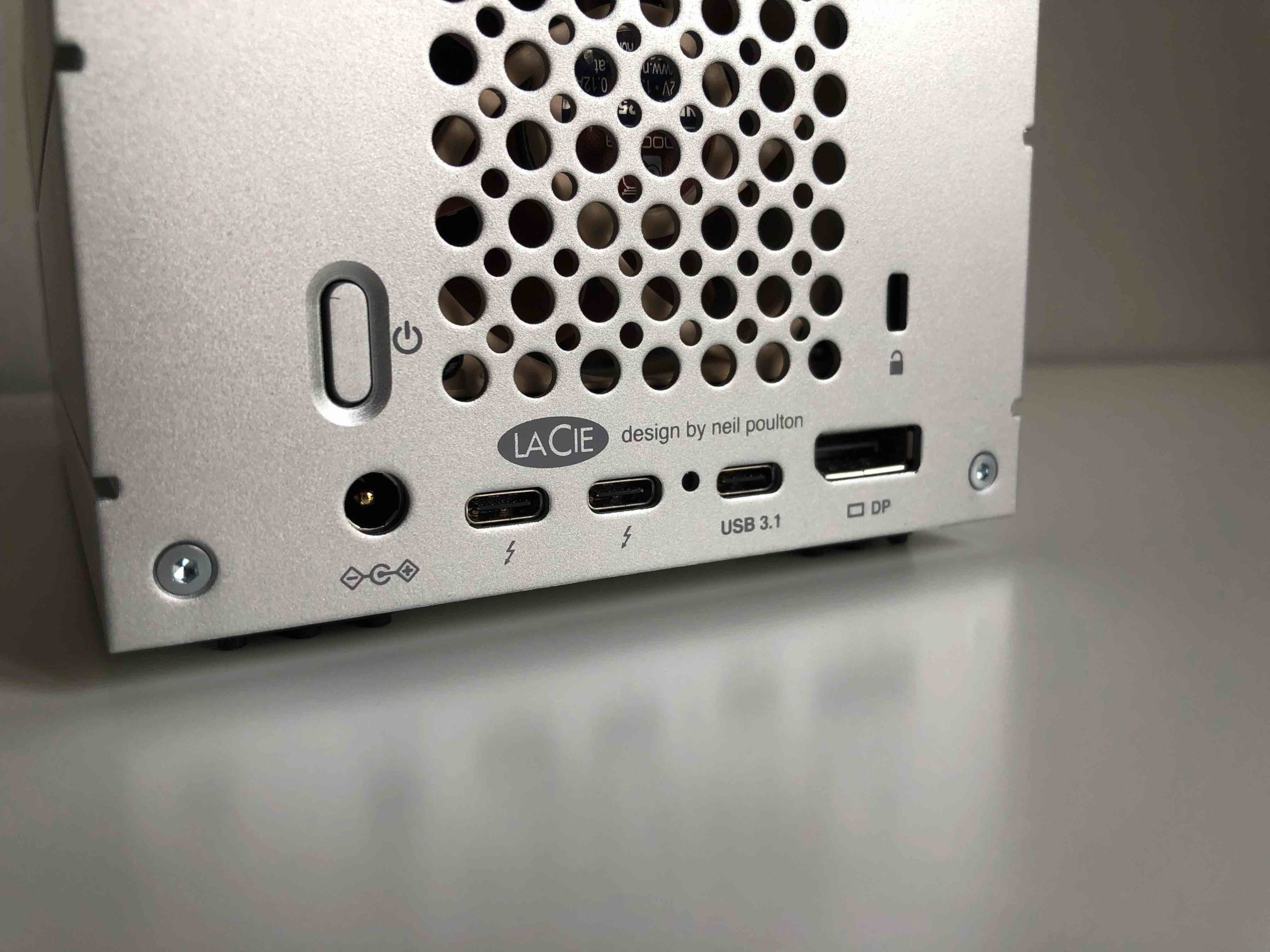 LaCie 2big ale neslouží pouze jako úložiště pro data. Zařízení v sobě skrývá i funkci dokovací stanice. Zadní strana je totiž osazena dvěma Thunderbolt 3 porty, jedním USB 3.1 portem typu C a jedním DisplayPortem pro připojení externího monitoru. Kromě portů jsou záda osazena ještě slotem pro zámek a tlačítkem napájení. Na přední straně se pak kromě již zmíněných dvou pozic pro disky a modré LED diody nachází také jeden USB 3.0 port typu A port a sloty na SD, CF karty.
