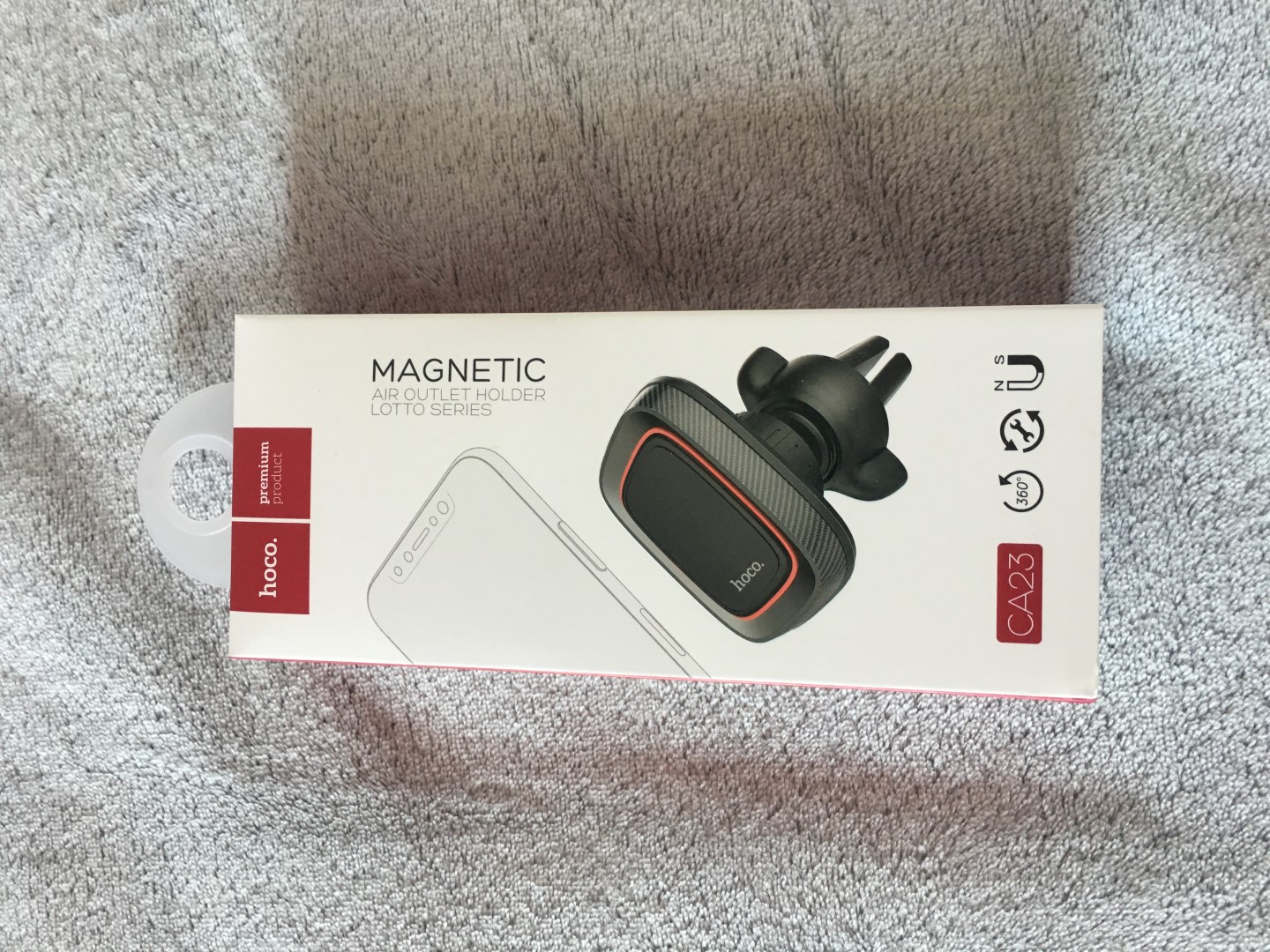 Jako první si do hledáčku vezmeme držák od společnosti hoco., přesněji hoco. Magnetic. Tento držák se vyznačuje tím, že nemá přísavku, nýbrž úchyt, pomocí kterého můžete držák připevnit za kterýkoliv průduch ve vašem autě. Jak už název samotného držáku napovídá, telefon na tento držák připevníte pomocí magnetické síly. Přesněji pomocí magnetické nálepky, kterou si přilepíte například na obal telefonu.