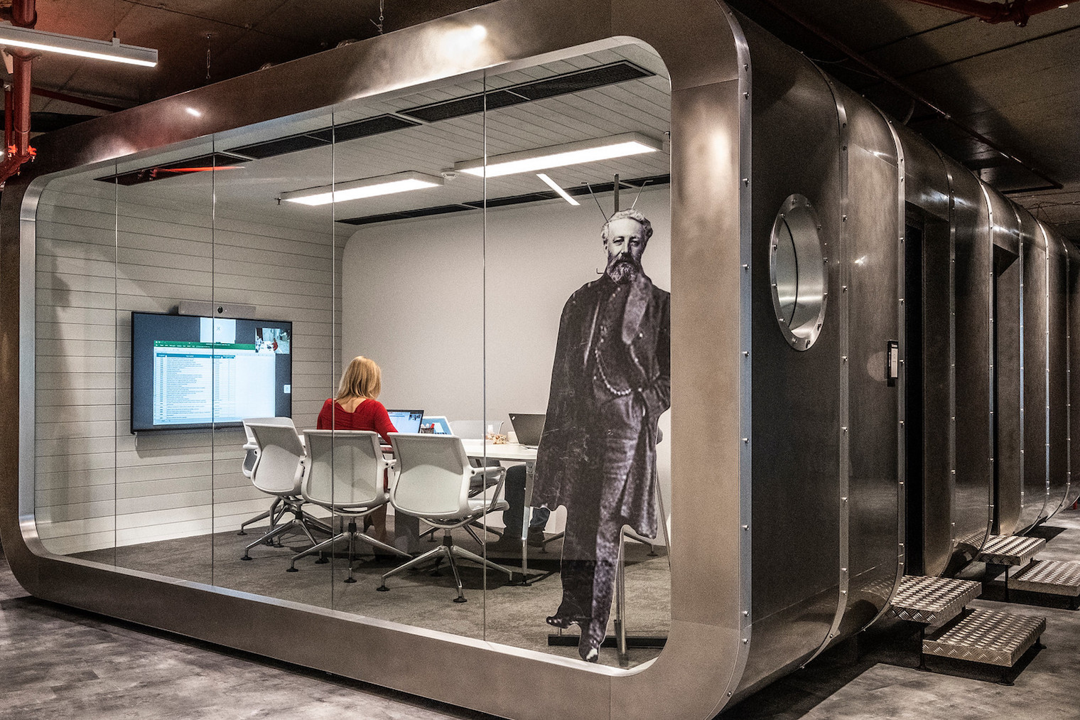 Celým prostorem nového českého sídla technologické společnosti ALEF Group, která svým zákazníkům nabízí technologická řešení ukládání dat či kybernetické bezpečnosti, se prolíná téma ponorky. Ta je s firmou dlouhodobě spojená. Znázorňuje nejenom pevnost, sílu a moderní technologie, ale také symbolicky znamená „ponořit“ se do jakýchkoliv požadavků zákazníka opravdu detailně a efektivně. Více než dvě stovky zaměstnanců se tedy nyní noří do práce v administrativní budově Butterfly v pražském Karlíně, kde interiéry nových prostor navrhl architekt Martin Stára ze studia Perspektiv.