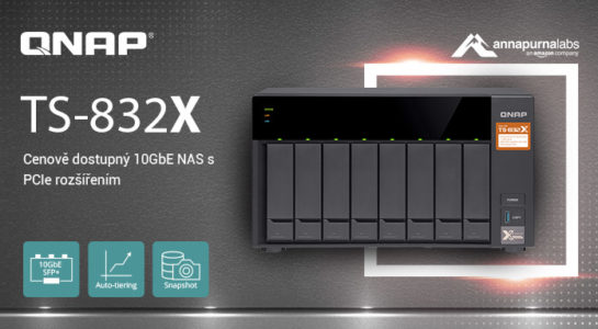Tisková zpráva: Společnost QNAP dnes představila nový model TS-832X, čtyřjádrový NAS s 8 pozic na disky a dvěma vestavěnými porty 10GbE SFP+. Tento model uživatelům nabízí cenově výhodné, vysokorychlostní řešení síťového úložiště. Jedná se také o NAS na architektuře ARM, která podporuje technologii Qtier pro automatické vrstvení; sloty PCIe umožňují instalaci periferních karet, jako jsou 10GbE NIC, karty QM2, rozšiřovací karty USB 3.1 10 Gb/s nebo síťové karty pro zvýšení výkonu NAS a potenciálu aplikací.