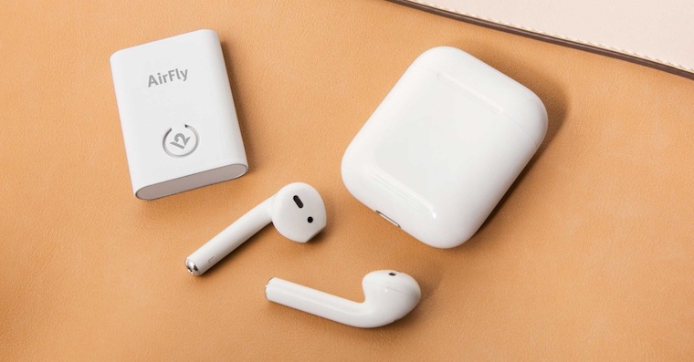 Na trhu se objevil malý gadget s názvem AirFly od společnosti Twelve South, který vám právě AirPods s přístroji disponujícími klasickým jack konektorem propojí. Jedná se totiž o malou krabičku s Bluetooth a krátkým kabelem s jack konektorem, který stačí připojit do příslušného zařízení. AirPody se pak ke gadgetu připojí a voila, kýžený poslech zvuku je na světě.