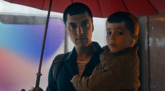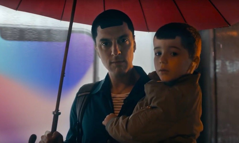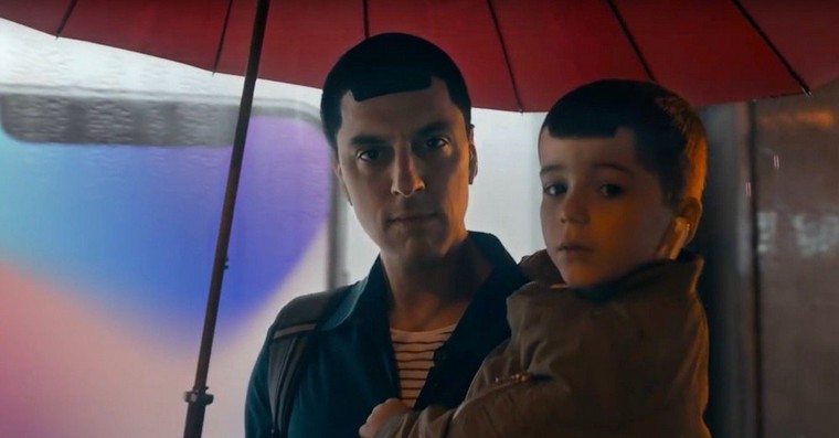 I když iPhone X není v reklamě vůbec vidět, Samsung si i tak z výřezu v horní části obrazovky iPhonu X vystřelil. V jednom okamžiku jde totiž žena okolo otce se synem, přičemž oba dva mají ofinu v podobě výřezu.